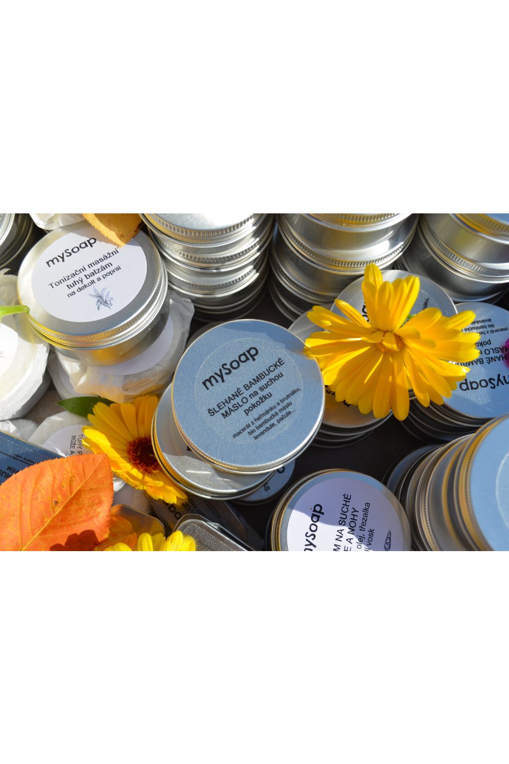 Ingredients: Butyrospermum Parkii Butter (bio bambucké máslo), Olea Europaea Fruit Oil (panenský olivový olej), Cannabis Sativa Seed Oil (konopný lej LZS), Persea Gratissima Oil (avokádový olej LZS), Lecithin, Chamomilla Recutita Flower Extract (macerát heřmánek), Borago Officinalis Extract (macerát brutnák), Panthenol, Tocopheryl Acetate, Aqua, Lavandula Angustifolia Oil (EO levandule), Pogostemon Cablin Oil (EO pačule), Chamomilla Recutita Flower Oil (EO heřmánek modrý), Pelargonium Graveolens Oil (EO geranium), Melaleuca Alternifolia Leaf Oil (EO tea tree), Limonene, Linalool, Citronellol, Citral, Geraniol*.